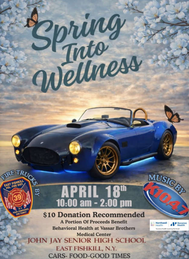JOIN TEAM K104 THIS SATURDAY, APRIL 18TH FROM 10AM-2PM AT JOHN JAY HIGH SCHOOL ON ROUTE 52 IN EAST FISHKILL FOR JOHN JAY RACING'S SPRING INTO WELLNESS CAR SHOW! BRING THE FAMILY TO CHECK OUT CARS, FIRE TRUCKS, FOOD TRUCKS AND MORE-- WITH A PORTION OF PROCEEDS BENEFITING BEHAVIOR HEALTH AT VASSAR BROTHERS MEDICAL CENTER. PLUS... WE'LL HAVE YOUR CHANCE TO ENTER-TO-WIN TICKETS TO SEE ED SHEERAN AT METLIFE STADIUM THIS SUMMER!